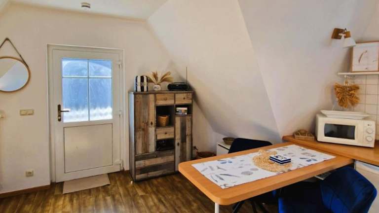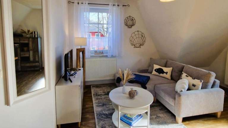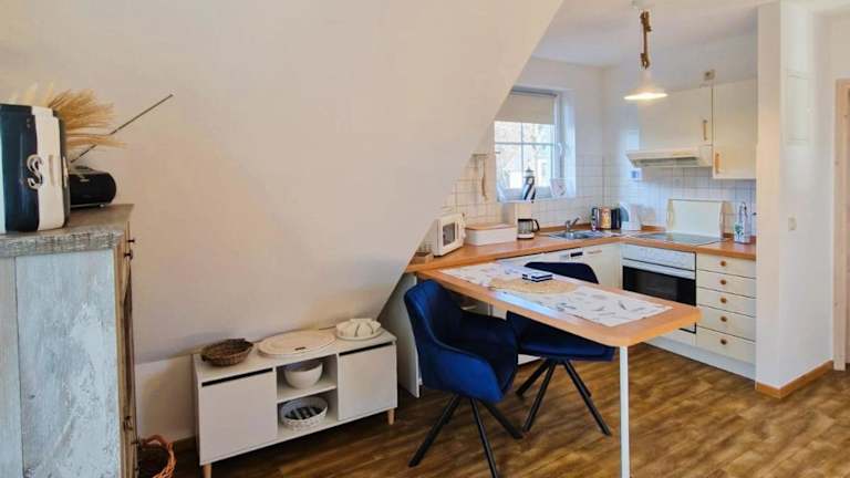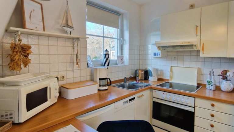 Die Ferienwohnung verfügt über ein Schlafzimmer, ein Wohnzimmer mit TV, eine gut ausgestattete Küche mit Kühlschrank und Geschirrspüler sowie ein Badezimmer mit Dusche.