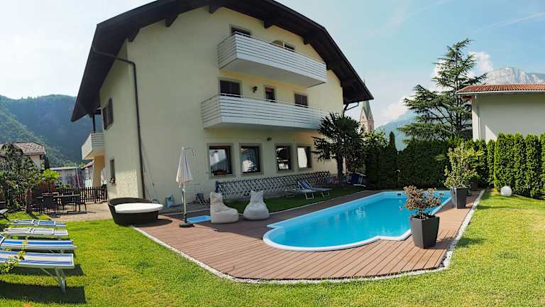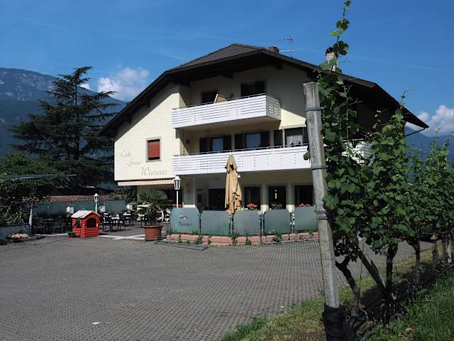 Garni mit Schwimmbad in Terlan Gelegen an der Südtiroler Weinstraße ist es von unserer Frühstückspension Wieterer in Terlan nur eine kurze Autofahrt bis in die Landeshauptstadt Bozen oder in die Kurstadt Meran. Die mediterran-alpine Umgebung macht Lust auf Wandern und Radfahren. Der Etschtaler Radweg führt direkt an Terlan vorbei, Räder stehen im Café Wieterer in Terlan zum Verleih bereit. Oder Sie machen sich zu Fuß auf den Weg: Ein gut markiertes Wanderwegenetz lockt ins Grüne und in die umliegenden Berge. Zurück in Ihrer Pension in Terlan lädt das hauseigene Schwimmbad mit Liegewiese zum Sprung ins kühle Nass, Tennisplätze, Minigolf und ein Klettergarten befinden sich in nächster Nähe des Café Garni Wieterer in Terlan.