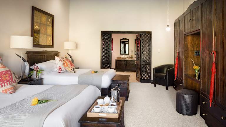 Die Unterkunft bietet Deluxe Rooms, die Nichtraucherzimmer sind und eine Fläche von ca. 100 m² aufweisen. Diese Zimmer sind im Hauptgebäude untergebracht und verfügen über ein kombiniertes Wohn- und Schlafzimmer, ein Doppelbett, Klimaanlage, einen Deckenventilator, Balkon oder Terrasse mit Sitzgelegenheit sowie ein Bad mit Dusche oder Badewanne. Einige Wohneinheiten bieten einen Blick auf den Pool.