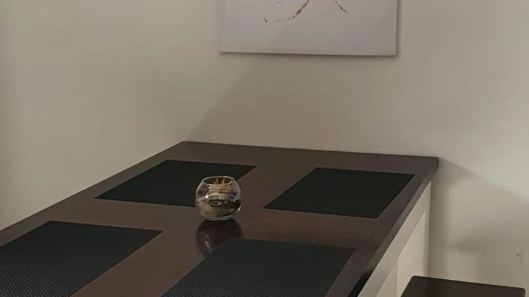 Die Ferienwohnung umfasst ein Schlafzimmer, ein Wohnzimmer mit Flachbild-TV sowie eine gut ausgestattete Küche, die mit einem Kühlschrank und einem Geschirrspüler ausgestattet ist. Ein Badezimmer mit Dusche ist ebenfalls vorhanden. Handtücher und Bettwäsche werden bereitgestellt, und der Balkon bietet einen Blick auf den Garten.