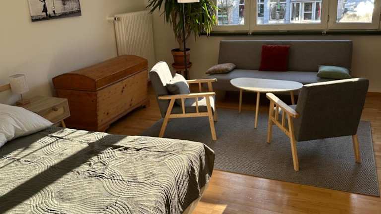 Die Ferienwohnung verfügt über 1 Schlafzimmer, eine Küche mit Kühlschrank und Ofen, einen Flachbild-TV, einen Sitzbereich und 1 Badezimmer mit Dusche. Handtücher und Bettwäsche werden zur Verfügung gestellt.