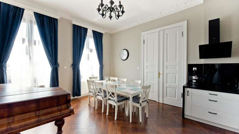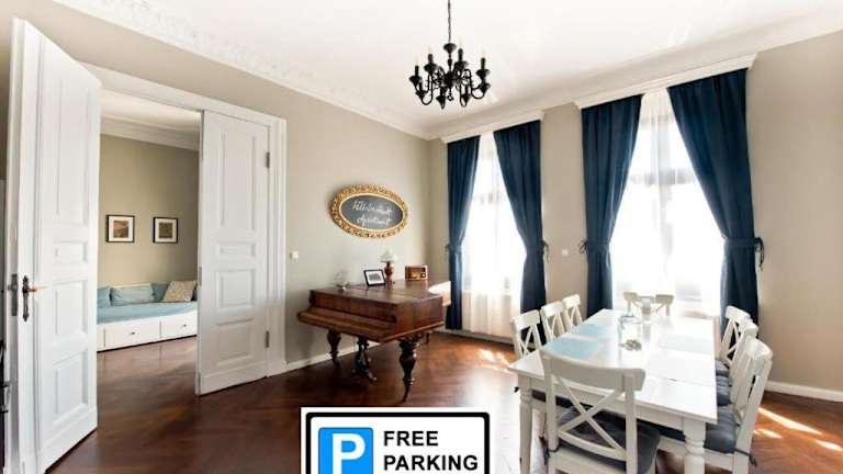 Das Wilhelmstadt Apartment 90 m - PARKING bietet Ihnen eine komfortable Unterkunft in einem historischen Gebäude im Herzen von Toruń. Mit kostenfreiem WLAN und einem Balkon genießen Sie hier eine tolle Aussicht auf die Stadt. Die Lage des Apartments ist ideal, nur wenige Gehminuten von der Promenade Bulwar Filadelfijski und dem Alten Rathaus entfernt. Auch das Kopernikus-Denkmal und das Planetarium sind bequem zu Fuß erreichbar.