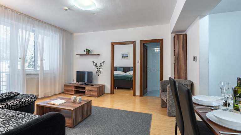 Die Wili Tatry Apartments in Tatranská Lomnica bieten modern eingerichtete Unterkünfte mit kostenfreiem WLAN und Zugang zu einem schönen Garten. Die Apartments verfügen über einen Balkon, einen gemütlichen Sitzbereich und einen Flachbild-Sat-TV. In der voll ausgestatteten Küche können Sie Ihre eigenen Mahlzeiten zubereiten und im Essbereich genießen. Das private Badezimmer ist mit kostenlosen Pflegeprodukten ausgestattet. Einige Apartments verfügen über einen Geschirrspüler, einen Backofen und einen Wasserkocher. Zusätzlich können Sie im Fitnesscenter trainieren und auf der Terrasse entspannen. Die Lage der Unterkunft bietet Ihnen die Möglichkeit, in der Nähe Skifahren und Radfahren zu gehen. Das Apartment liegt nur 1,3 km vom Jamy entfernt und der Flughafen Poprad-Tatry ist ca. 17 km entfernt.