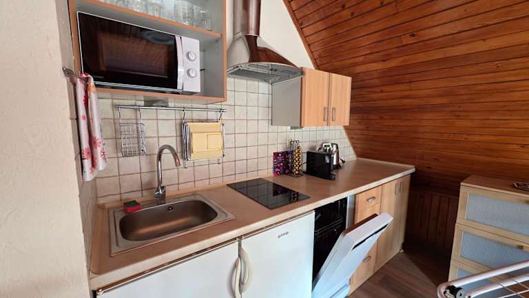 Da es sich um eine Unterkunft zur Selbstverpflegung handelt, haben Sie die Freiheit, Ihre eigenen Mahlzeiten in der Küchenzeile Ihres Apartments zuzubereiten. Die Ausstattung umfasst alle notwendigen Geräte wie Herd, Mikrowelle und Kühlschrank. Kostenloser Tee steht zur Verfügung, um Ihren Aufenthalt noch angenehmer zu gestalten.
