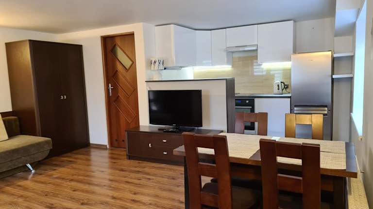 In der Willa Aster können Sie Ihre eigenen Mahlzeiten zubereiten und die Küchenzeile in Ihrer Wohneinheit nutzen. Es gibt auch einen Grillbereich, wo Sie Ihre Lieblingsspeisen im Freien zubereiten können. Alternativ können Sie auch die nahe gelegenen Restaurants erkunden und lokale polnische Spezialitäten probieren.