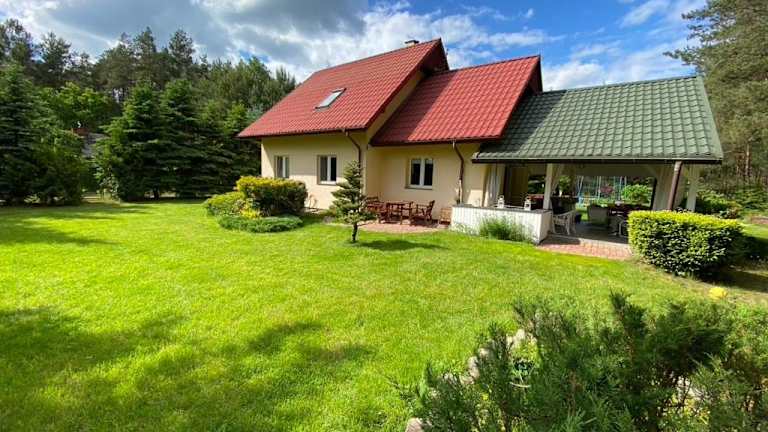 Das Dom nad rzeką in Cieksyn ist ein charmantes Ferienhaus, das mit einem Balkon und einem eigenen Pool ausgestattet ist. Hier können Gäste die Ruhe und Schönheit der umliegenden Natur genießen und sich in einer gut ausgestatteten Unterkunft mit 4 Schlafzimmern und einer gemütlichen Terrasse wie zu Hause fühlen. Die kostenfreien Privatparkplätze bieten zusätzlichen Komfort. Der Flughafen Warschau-Modlin ist nur 19 km entfernt und ermöglicht eine bequeme Anreise.