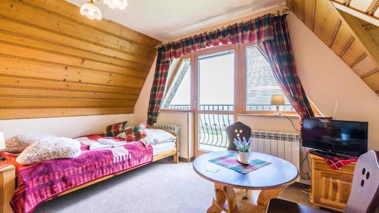 Die Zimmer sind mit einem Balkon ausgestattet und bieten Ausstattungen wie Tee- und Kaffeezubehör. Jedes Zimmer verfügt über ein eigenes Bad mit Dusche, einen TV und einen Blick auf Zakopane und die umliegenden Berge.