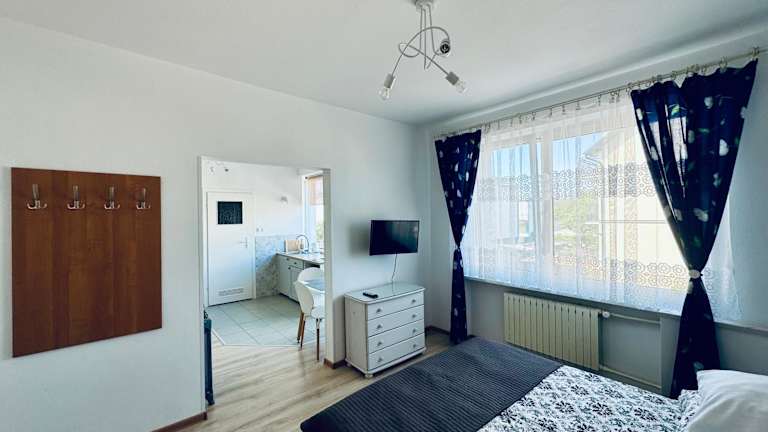 Die Zimmer in der Willa Medom sind einfach, aber komfortabel eingerichtet. Sie verfügen über einen TV, einen Kühlschrank und ein eigenes Badezimmer mit Dusche. Die helle Einrichtung sorgt für eine angenehme Atmosphäre und lädt zum Entspannen ein. WLAN nutzen Sie in der gesamten Unterkunft kostenfrei.