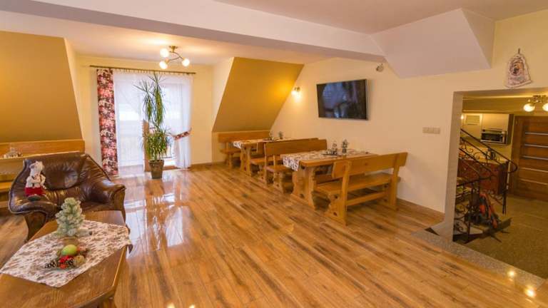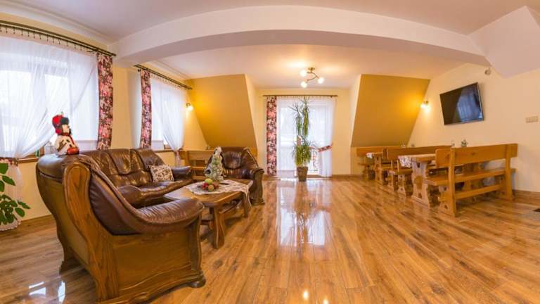 Die Unterkunft Willa na Brzyzku befindet sich in Poronin, in der Region Kleinpolen. Der Bahnhof Zakopane liegt 12 km entfernt und der Aqua Park Zakopane ist 13 km von der Unterkunft entfernt. Therme Bania erreicht man nach 11 km.