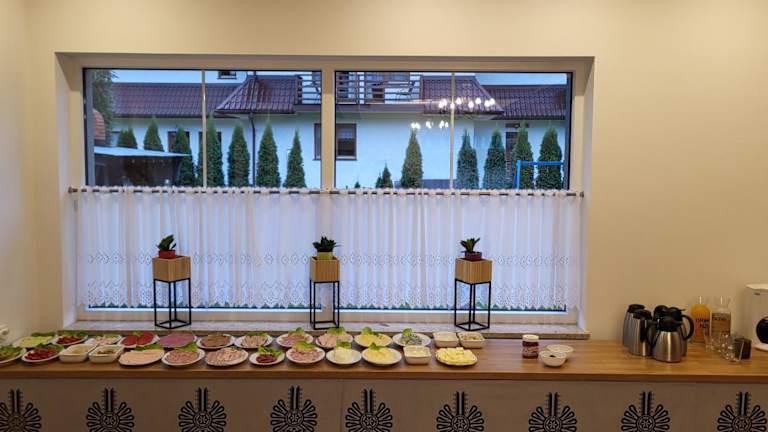 Die Unterkunft bietet eine Vollpension, die regionale und polnische Küche umfasst. Es stehen auch Grillmöglichkeiten zur Verfügung.
