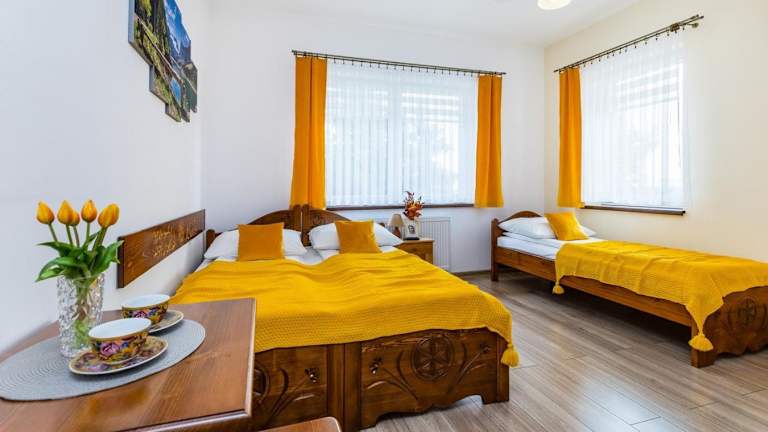 Die Willa Pod Wierchem in Bukowina Tatrzańska ist der ideale Ort für einen erholsamen Aufenthalt in Kleinpolen. Genießen Sie die ruhige Umgebung, das kostenfreie WLAN und die Grillmöglichkeiten. Die Unterkunft bietet kostenfreie Privatparkplätze und einige Zimmer verfügen über eine Küchenzeile. Starten Sie Ihren Tag mit einem köstlichen kontinentalen Frühstück und entspannen Sie auf der Terrasse. Die Nähe zu den Thermalbädern von Bania und den Skimöglichkeiten machen die Willa Pod Wierchem zu einem perfekten Ausgangspunkt für Aktivitäten in der Natur.