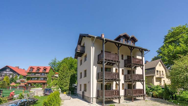 Die Unterkunft Willa z Widokiem befindet sich 1,2 km vom Busbahnhof Szklarska Poręba entfernt. Der Bahnhof Ober-Schreiberhau liegt 2 km entfernt, während der Dinopark eine Entfernung von 3,1 km aufweist. Der nächstgelegene Flughafen ist der Flughafen Nikolaus-Kopernikus Breslau, der sich 122 km von der Unterkunft befindet.