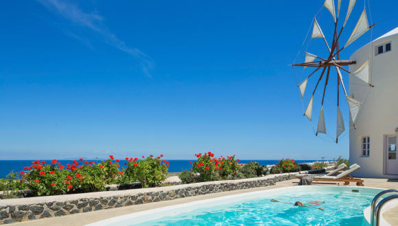 Die Windmill Villas auf Santorin bieten Ihnen einen luxuriösen Aufenthalt in umgebauten Windmühlen, die zu eleganten Villen mit nierenförmigen Pools und atemberaubendem Meerblick umgestaltet wurden. Genießen Sie den Komfort der gut ausgestatteten Küche, der Schlafzimmer mit eigenem Bad und des Wohnbereichs mit Sat-TV und Stereoanlage. Entspannen Sie auf Ihrer eigenen Sonnenterrasse und lassen Sie sich von einem privaten Koch oder Masseur verwöhnen. Die Lage der Villen zwischen Fira und Oia bietet Ihnen eine ideale Ausgangsbasis, um die Insel zu erkunden.