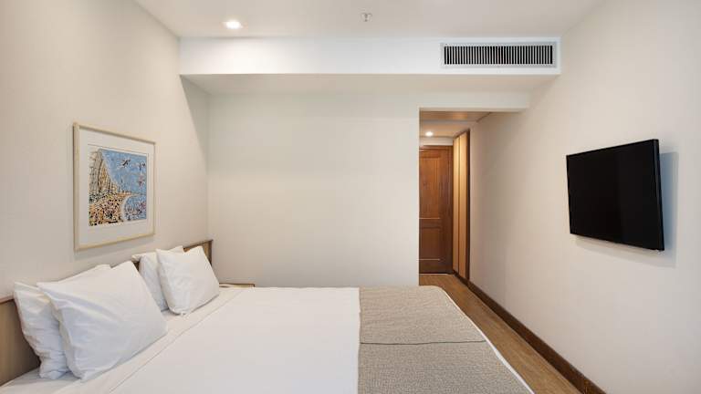 Das Hotel verfügt über 237 Zimmer und 2 Suiten, die über 17 Etagen verteilt sind. Die Zimmer sind modern und komfortabel eingerichtet und bieten Annehmlichkeiten wie Klimaanlage, Flachbild-Kabel-TV und Minibar. Das eigene Bad ist mit einer Dusche, einem Haartrockner und kostenlosen Pflegeprodukten ausgestattet. Das Hotel bietet auch eine Reihe von Einrichtungen wie einen Außenpool, eine Sonnenterrasse und ein gut ausgestattetes Fitnesscenter. WLAN ist im gesamten Hotel kostenlos verfügbar.