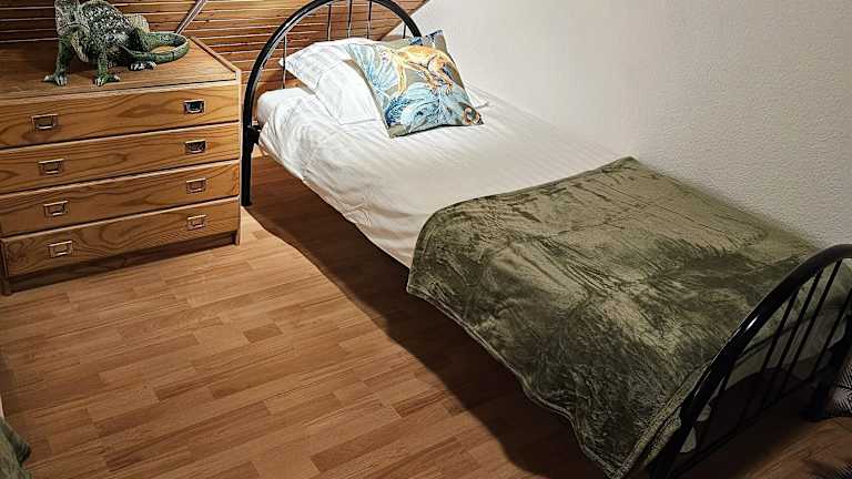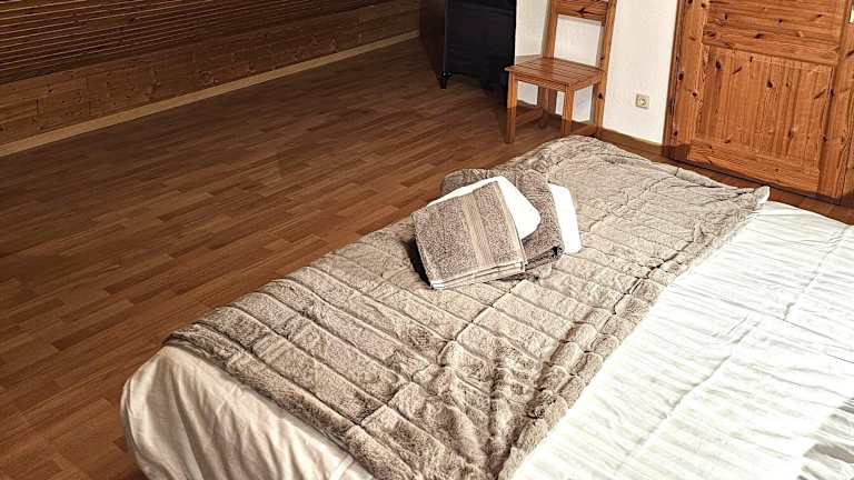 Die Ferienwohnung ist ausgestattet mit drei Schlafzimmern, einem Wohnzimmer und einer voll ausgestatteten Küche, die einen Kühlschrank und einen Essbereich umfasst. Das Badezimmer ist ebenfalls vorhanden. Des Weiteren gibt es einen Fernseher mit Kabelkanälen.