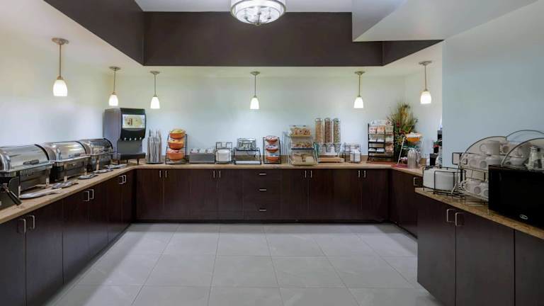 Beginnen Sie Ihren Tag im Wingate by Wyndham Memphis East mit einem köstlichen Frühstück. Es erwartet Sie ein kontinentales Frühstücksbuffet mit einer Auswahl an Backwaren, Müsli, Obst, Kaffee und Saft.