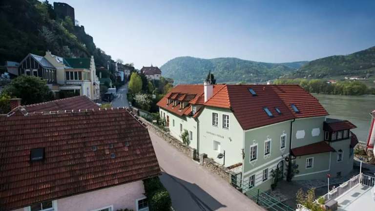 Das Winzerhof - Gästehaus Stöger liegt in der bezaubernden Stadt Dürnstein, nur wenige Schritte von der Donau entfernt. Die Lage ermöglicht es Ihnen, die idyllische Umgebung zu erkunden und die Schönheit der Wachau zu genießen. In nur 10 Minuten erreichen Sie Krems und in 32 km Entfernung liegt die Stadt Melk mit ihrer berühmten Abtei Melk. Die Umgebung bietet zahlreiche Möglichkeiten für Aktivitäten im Freien, wie zum Beispiel Radfahren entlang des Donauradwegs oder Wandern durch die Weinberge.