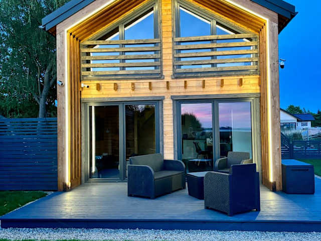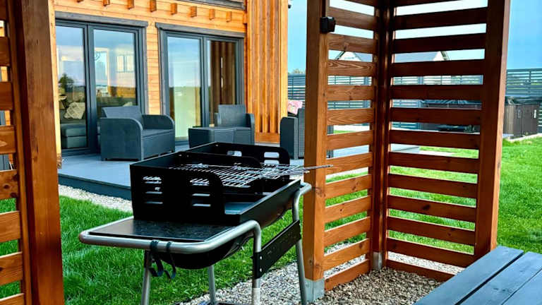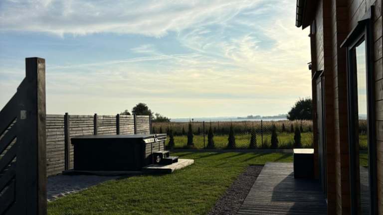 Wodne Widoki ist ein Ferienhaus mit Garten und Terrasse. Es bietet eine klimatisierte Unterkunft und einen Whirlpool für Erholung und Entspannung.