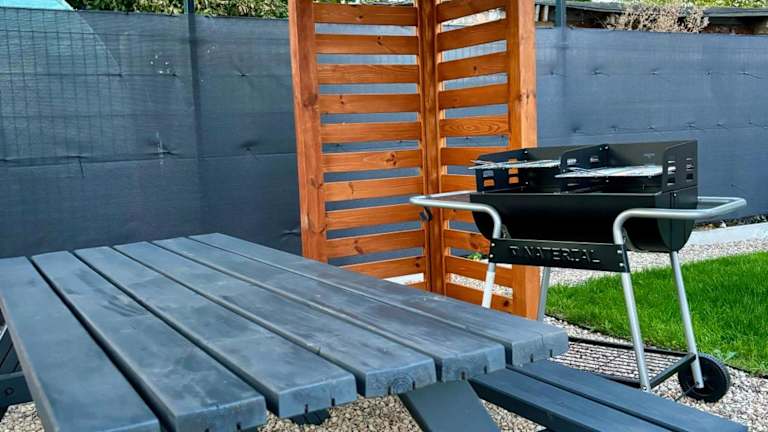 Das Ferienhaus verfügt über 2 Schlafzimmer, eine Küche mit Kühlschrank und Geschirrspüler, einen Flachbild-TV, einen Sitzbereich sowie ein Badezimmer mit Dusche. Handtücher und Bettwäsche sind ebenfalls vorhanden.