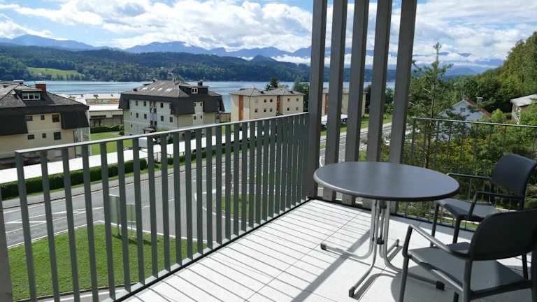 Wörthersee - Apartment 44 bietet Übernachtungsmöglichkeiten mit Balkon und Blick auf die Berge. Die Ferienwohnung ist klimatisiert und bietet sowohl kostenlose Parkmöglichkeiten als auch eine voll ausgestattete Küchenzeile.
