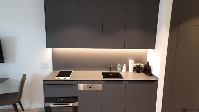 Die Ferienwohnung verfügt über 1 Schlafzimmer, ein Wohnzimmer und eine voll ausgestattete Küchenzeile mit Kühlschrank und Kaffeemaschine. Das Badezimmer ist mit einer Dusche und einem Haartrockner ausgestattet. Handtücher und Bettwäsche werden bereitgestellt.