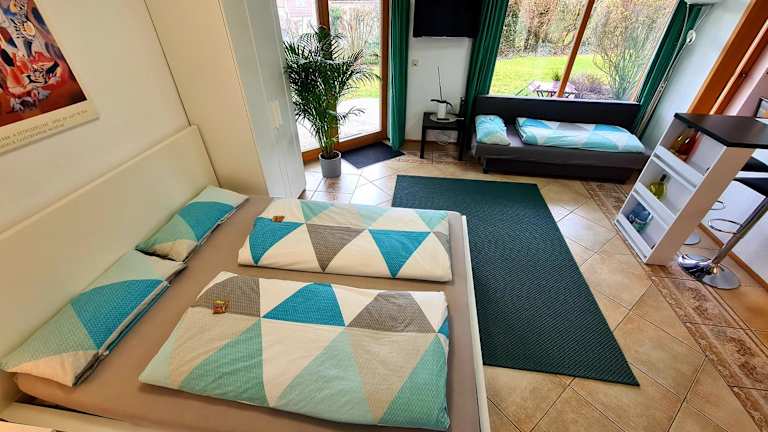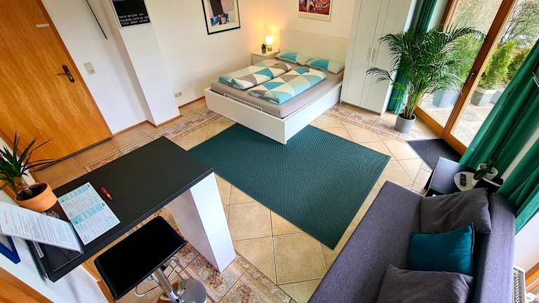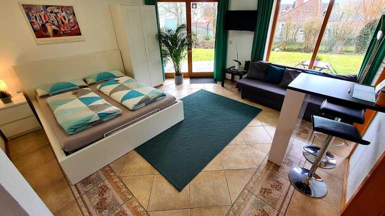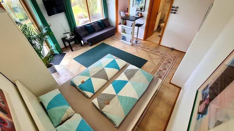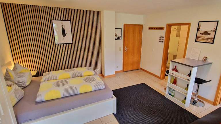 Das Wohlfühl-Apartment Bad Kissingen I bietet modernen Komfort und eine idyllische Lage mit Blick auf die Stadt.