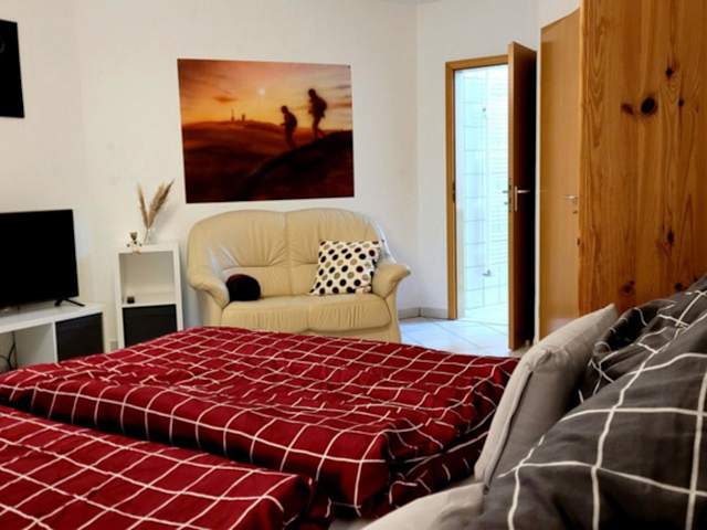 Die Ferienwohnung verfügt über ein gemütliches Schlafzimmer, in dem Sie sich nach einem erlebnisreichen Tag entspannen können. Der Flachbild-TV im Wohnbereich lädt zum Entspannen ein, während der Essbereich perfekt ist, um Ihre Mahlzeiten zu genießen. Die Küche ist mit einem Kühlschrank und einem Backofen ausgestattet, so dass Sie Ihre Lieblingsgerichte zubereiten können. Handtücher und Bettwäsche werden gestellt, um Ihren Aufenthalt so angenehm wie möglich zu gestalten.