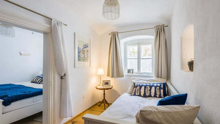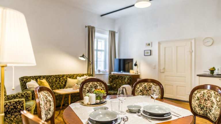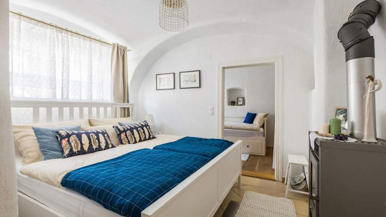 Das Apartment im Wohnatelier im Bioweingut verfügt über zwei Schlafzimmer, ein gemütliches Wohnzimmer und eine gut ausgestattete Küche mit Kühlschrank und Geschirrspüler. Das Badezimmer ist mit einer Dusche ausgestattet und Handtücher und Bettwäsche werden gestellt. Das Apartment bietet zudem kostenfreies WLAN und eine Terrasse mit Blick auf die Stadt.