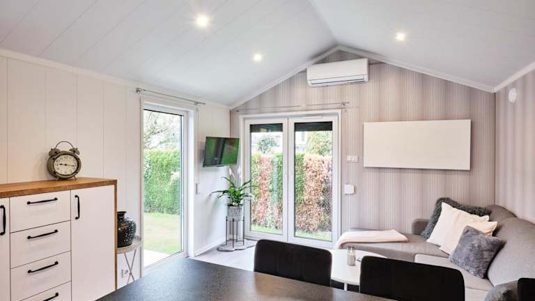 Die Zimmer sind ausgestattet mit einer Terrasse, einem Sitzbereich und einem Flachbild-TV. Eine voll ausgestattete Küche ist ebenfalls vorhanden, welche einen Kühlschrank, Geschirrspüler, Ofen, Mikrowelle, Herdplatte, Kaffeemaschine und Wasserkocher umfasst. Jedes Zimmer verfügt über ein eigenes Badezimmer mit Dusche und Haartrockner.