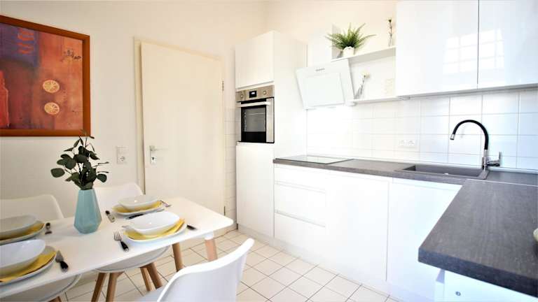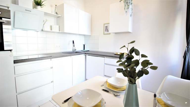Die Ferienwohnung verfügt über ein Schlafzimmer, eine voll ausgestattete Küche mit Kühlschrank und Geschirrspüler sowie ein Badezimmer mit Dusche und kostenlosen Pflegeprodukten. Handtücher und Bettwäsche sind in der Unterkunft bereitgestellt, zudem ist eine Waschmaschine vorhanden.