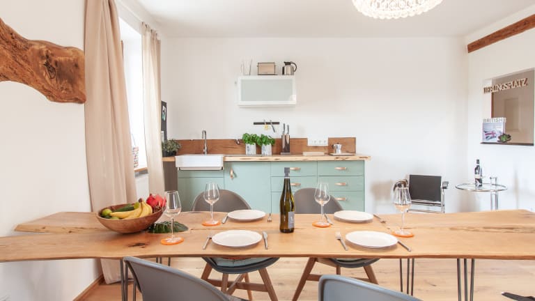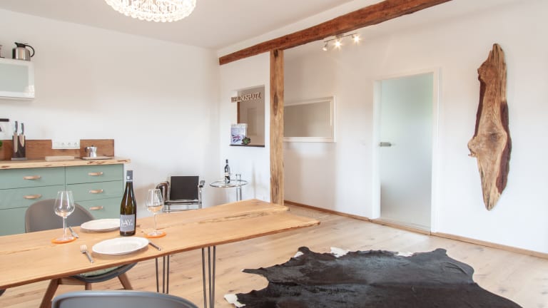 Das Hotel Wohnen am Schlossberg liegt in einer wunderschönen Umgebung in Thüngen. Die Lage ist perfekt, um die historischen Gebäude und gemütlichen Cafés in der Nähe zu erkunden. Die Umgebung ist auch ein idealer Ausgangspunkt für Wanderungen oder Radtouren in den umliegenden Bergen. Von hier aus haben Sie eine tolle Aussicht auf die Weinberge und Weingüter der Region.