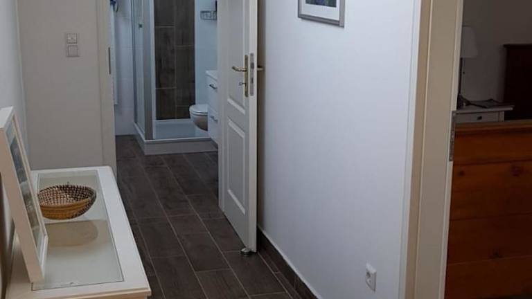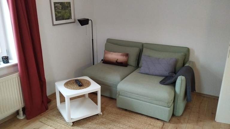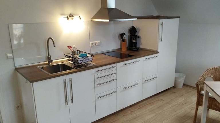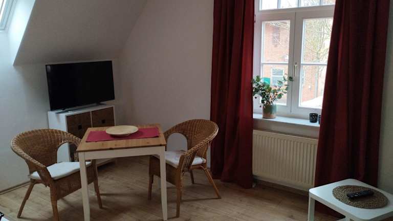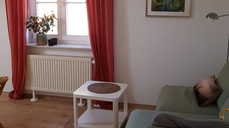 Die Ferienwohnung verfügt über ein Schlafzimmer, ein Wohnzimmer und eine voll ausgestattete Küchenzeile, die mit einem Kühlschrank und einer Kaffeemaschine ausgestattet ist. Zusätzlich gibt es ein Badezimmer mit Dusche und Haartrockner. Handtücher und Bettwäsche werden bereitgestellt.