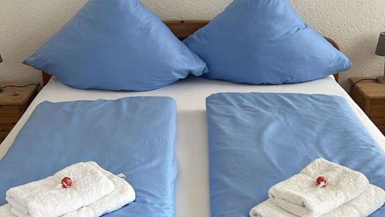 Die Ferienwohnung verfügt über ein Schlafzimmer, ein Badezimmer mit Dusche und eine gut ausgestattete Küche mit Kühlschrank und Ofen. Ein TV mit Kabelkanälen ist ebenfalls vorhanden. Handtücher und Bettwäsche werden bereitgestellt.