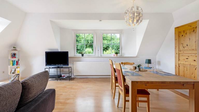 Die Ferienwohnung Wohnung auf dem Dorf bietet Übernachtungsmöglichkeiten mit Gartenblick. Die Unterkunft verfügt über kostenloses WLAN sowie einen privaten Parkplatz, der ebenfalls kostenfrei genutzt werden kann.