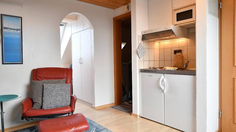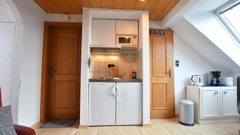 Die Ferienwohnung umfasst ein Schlafzimmer und ein Badezimmer mit Dusche. Eine gut ausgestattete Küche ist vorhanden, die mit einem Kühlschrank und einer Mikrowelle ausgestattet ist. Zusätzlich stehen Kabel-TV, Handtücher und Bettwäsche zur Verfügung. Allergikerfreundliche Zimmer sind ebenfalls verfügbar.