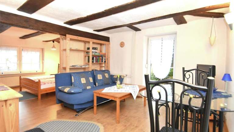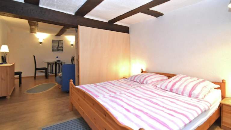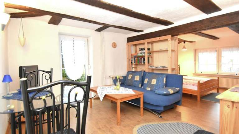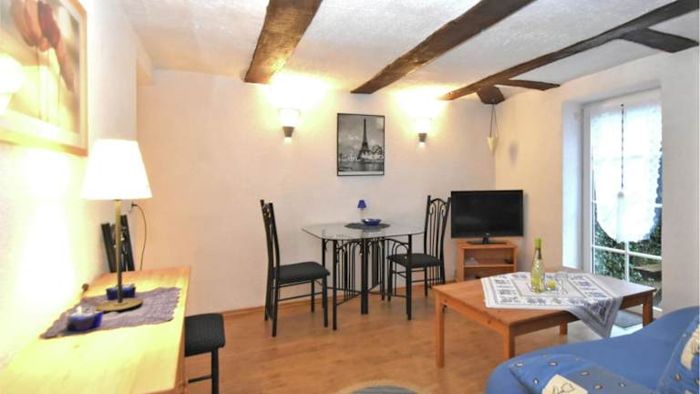 Die Ferienwohnung umfasst 1 Schlafzimmer, ein Wohnzimmer, eine gut ausgestattete Küche, ein Badezimmer mit Dusche und Badewanne sowie eine Terrasse mit Gartenblick. Handtücher und Bettwäsche werden zur Verfügung gestellt.