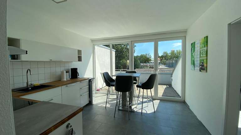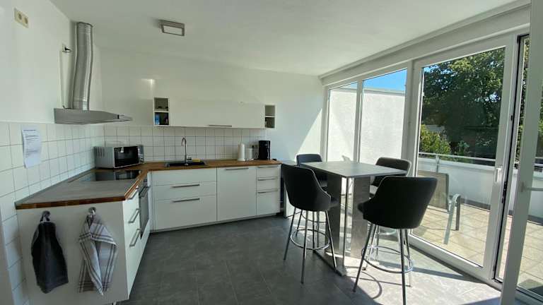 Die Wohnung verfügt über 2 Einzelzimmer, die jeweils mit einem Flachbild-TV ausgestattet sind. Die Gemeinschaftsküche ist mit allen notwendigen Geräten wie Kühlschrank, Geschirrspüler, Mikrowelle, Kaffeemaschine und Wasserkocher ausgestattet. Das gemeinsame Bad bietet allen Gästen Komfort und Bequemlichkeit. Außerdem gibt es einen Balkon, auf dem Sie die frische Luft und die Umgebung genießen können.
