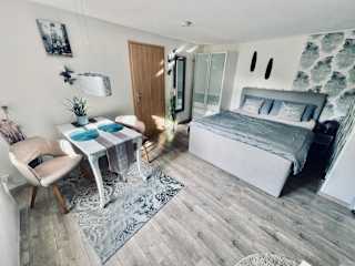 Die Ferienwohnung bietet einen Schlafbereich mit einem Schlafzimmer und einem Badezimmer. Zur Ausstattung gehören Bettwäsche, Handtücher, ein Flachbild-TV mit Kabelkanälen, ein Essbereich sowie eine voll ausgestattete Küche. Außerdem steht eine Terrasse mit Gartenblick zur Verfügung.