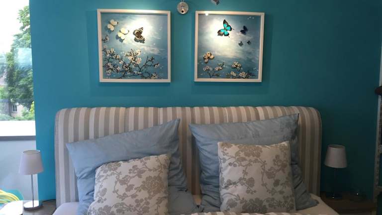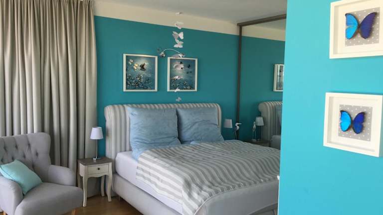 Die Ferienwohnung verfügt über 1 Schlafzimmer, ein Wohnzimmer und eine voll ausgestattete Küche mit Kühlschrank und Kaffeemaschine. Das Badezimmer ist mit einer Dusche und einem Haartrockner ausgestattet. Handtücher und Bettwäsche werden bereitgestellt.