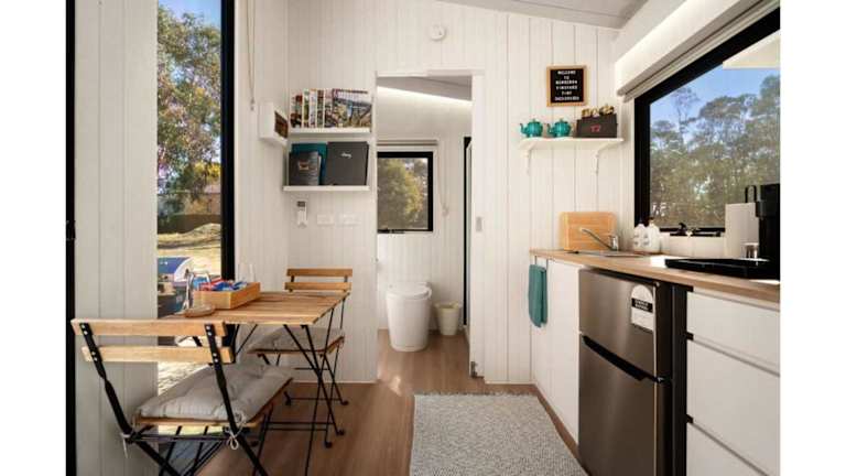 Das Ferienhaus im Womburra Vineyard Tiny Stay verfügt über ein separates Schlafzimmer, in dem Sie sich nach einem ereignisreichen Tag entspannen können. Die voll ausgestattete Küche ermöglicht es Ihnen, Ihre eigenen Mahlzeiten zuzubereiten und den Komfort eines eigenen Zuhauses zu genießen. Handtücher und Bettwäsche werden gestellt, um Ihnen einen angenehmen Aufenthalt zu ermöglichen.