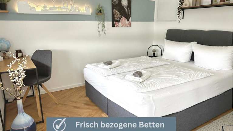 Die Ferienwohnung besteht aus einem Schlafzimmer, einem Flachbild-TV und einem Badezimmer mit Dusche. Die gut ausgestattete Kochnische beinhaltet einen Kühlschrank und einen Geschirrspüler. Handtücher und Bettwäsche werden bereitgestellt.