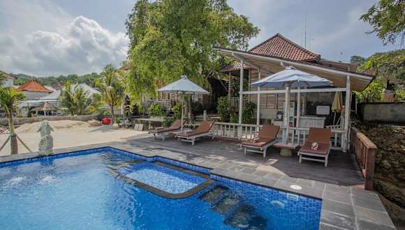 Die Wooden Beach Sunset Cottages in Nusa Lembongan bieten eine komfortable Unterkunft in Strandnähe. Die klimatisierten Cottages sind mit kostenfreiem WLAN ausgestattet und verfügen über ein eigenes Bad. Ein kontinentales Frühstück wird angeboten und Gäste können den eigenen Strandbereich nutzen. Die Unterkunft befindet sich in der Nähe von beliebten Sehenswürdigkeiten wie dem Secret Beach und dem Gala-Gala Underground House. Der internationale Flughafen Denpasar ist ca. 83 km entfernt.