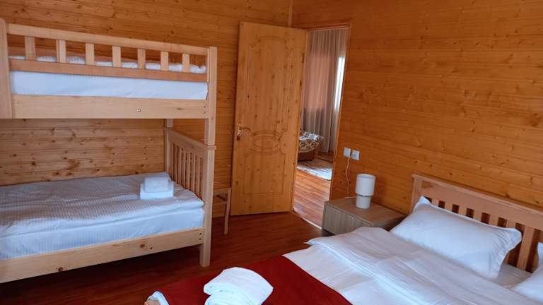 Das Ferienhaus verfügt über einen schönen Garten, in dem Sie sich entspannen und die Natur genießen können. Nutzen Sie die Gelegenheit, die Umgebung zu erkunden und Spaziergänge in der Natur zu unternehmen. Das Wooden House Ashuri bietet Ihnen eine ruhige und entspannte Atmosphäre, in der Sie sich erholen und neue Energie tanken können.