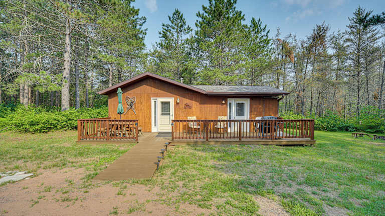 Entdecken Sie das Woodland Cabin with Fishing, ATV and Snowmobile Trails in Lake Nebagamon, ein gemütliches Ferienhaus, das mit modernen Annehmlichkeiten ausgestattet ist und Ihnen einen unvergesslichen Aufenthalt bietet. Genießen Sie die kostenfreie Nutzung von WLAN in der gesamten Unterkunft und erleben Sie die Schönheit der Natur in Lake Nebagamon.