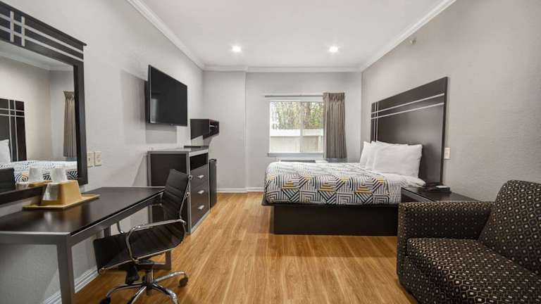 Die Zimmer im Woodland Inn Bush Intercontinental Airport sind komfortabel und bieten Annehmlichkeiten wie kostenfreies WLAN und Kabel-TV mit HBO. Jedes Zimmer verfügt auch über ein Bügeleisen/-brett, einen Haartrockner und kostenlose Ortsgespräche, um Ihren Aufenthalt so angenehm wie möglich zu gestalten.
