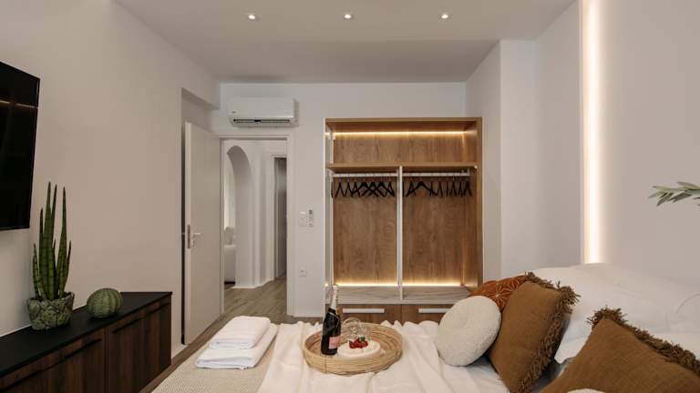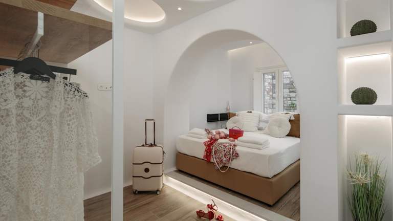Die WOW Panoramic View Deluxe Villas liegen in Agkidia, nur 3 km von der Burg Naxos entfernt. Die Lage bietet einen malerischen Blick auf die Umgebung und ist ein idealer Ausgangspunkt, um die Insel Naxos zu erkunden. Die berühmte Sehenswürdigkeit Portara ist nur 3,5 km entfernt und das Archäologische Museum von Naxos erreichen Sie nach 3 km. Der nationale Flughafen Naxos ist nur 4 km von den Villen entfernt.