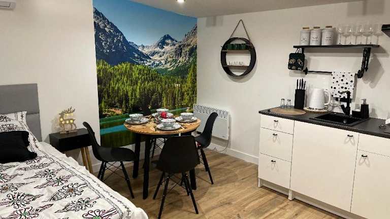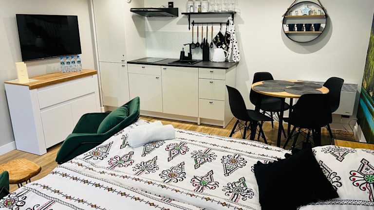 Die Unterkunft befindet sich in Węgierska Górka und bietet einen Blick auf die Berge. In der Umgebung sind verschiedene Aktivitäten wie Wandern oder Angeln möglich. Dębina Conference Centre liegt 14 km entfernt, während die John Paul II Route in Beskid Zywiecki 19 km entfernt ist.