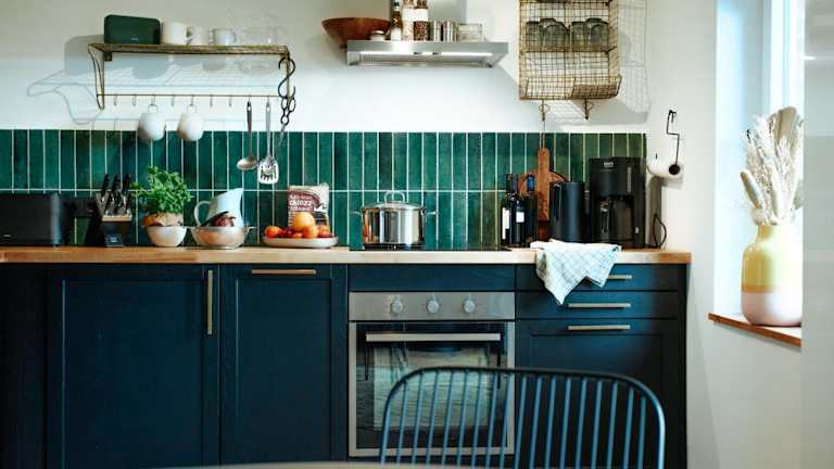 Die Unterkunft bietet eine voll ausgestattete Küche mit Kühlschrank, Geschirrspüler und Toaster sowie Sitzgelegenheiten und einen Essbereich.