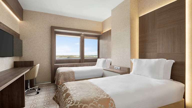 Die Zimmer sind mit Klimaanlage, einem Flachbild-TV mit Satellitenkanälen, einer Minibar, einem Wasserkocher sowie einem Schreibtisch ausgestattet. Jedes Zimmer verfügt über ein Badezimmer mit Dusche, kostenlosen Pflegeprodukten sowie Hausschuhen. Haartrockner und Bettwäsche sind ebenfalls vorhanden. Rollstuhlgerechte Zimmer sind auf Anfrage verfügbar.