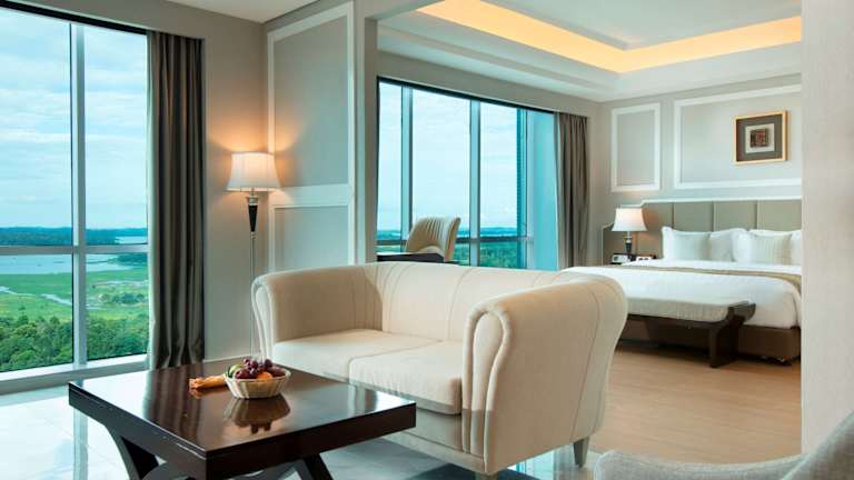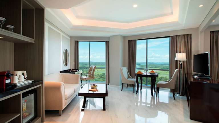 Das Hotel befindet sich in Batam, nur 50 Meter vom Strand entfernt. Zu den Entfernungen gehören: Flughafen ca. 35 m, Bahnhof ca. 5 m, Stadtzentrum/Ortszentrum ca. 30 m und Golfplatz ca. 10 m.